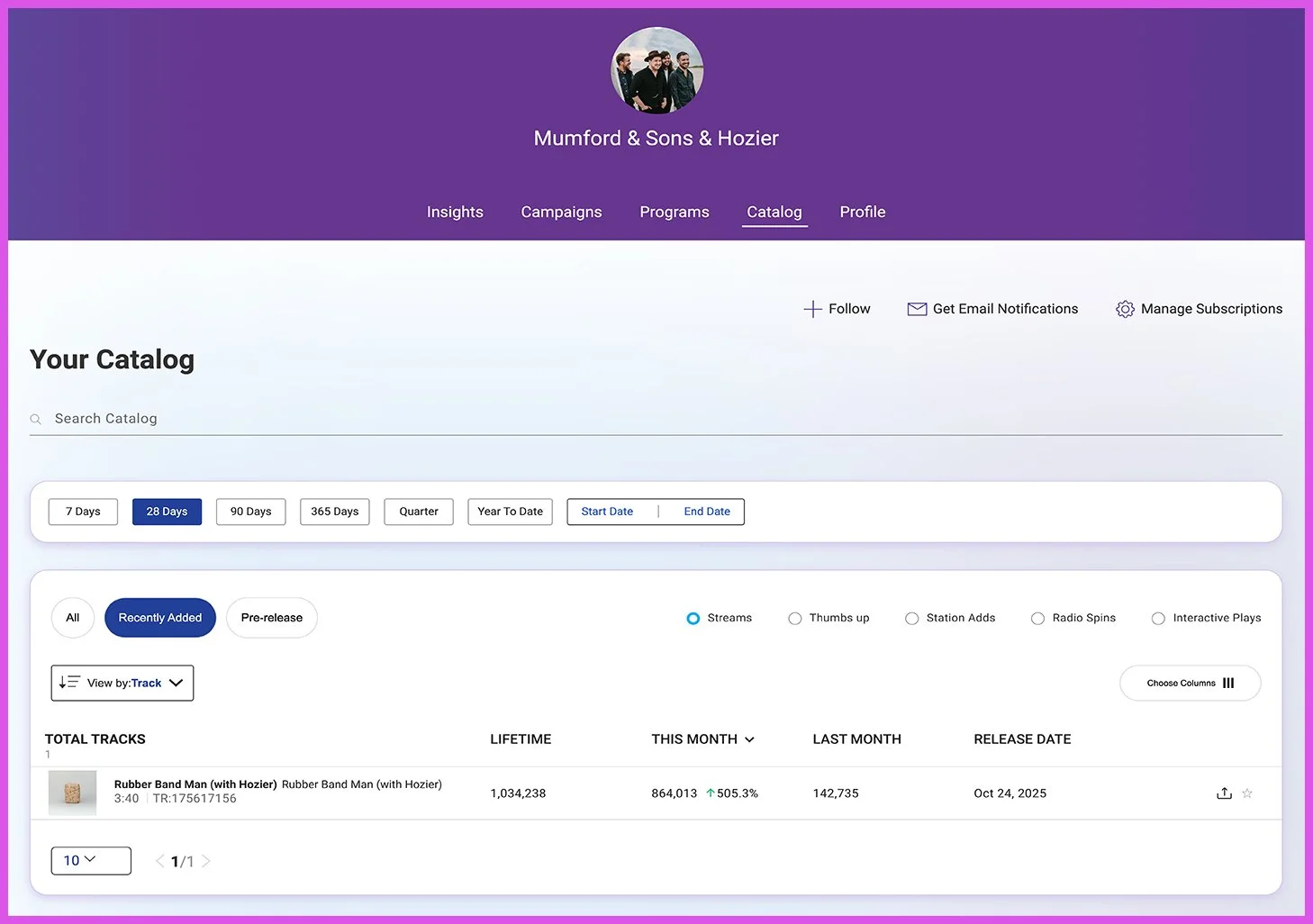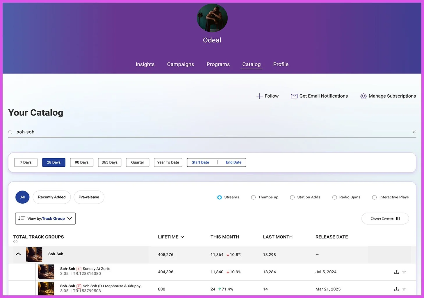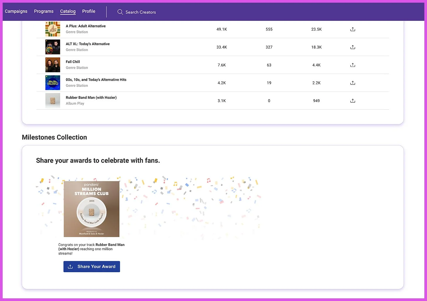 With the ability to access pre-release content, dynamic grouping, enhanced filtering, and improved Track Reporting, the Catalog Tab offers some great new options for keeping track of your performance on Pandora.