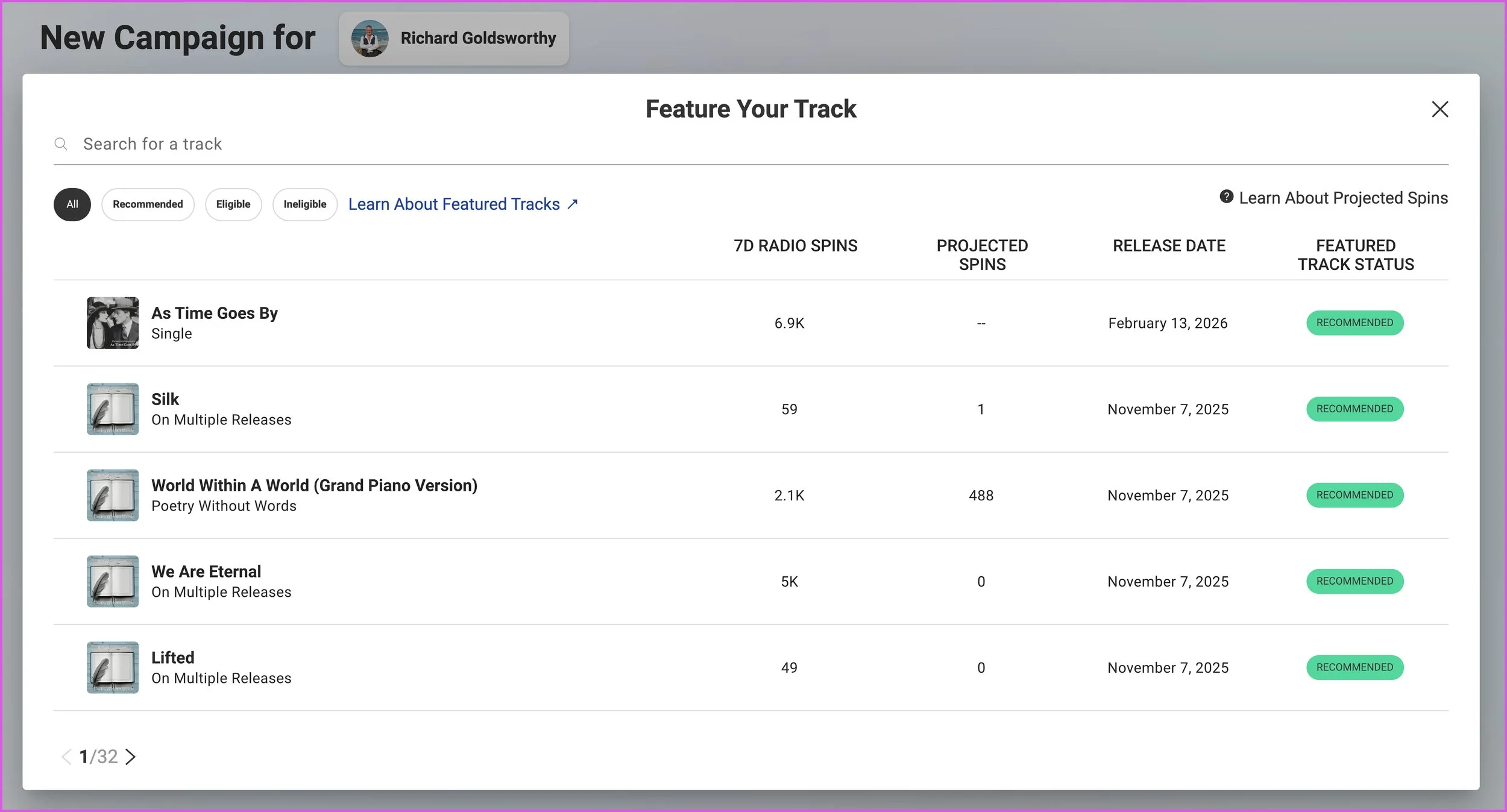 You can also click the “Recommended” filter to view the tracks that we think are good candidates to be featured
